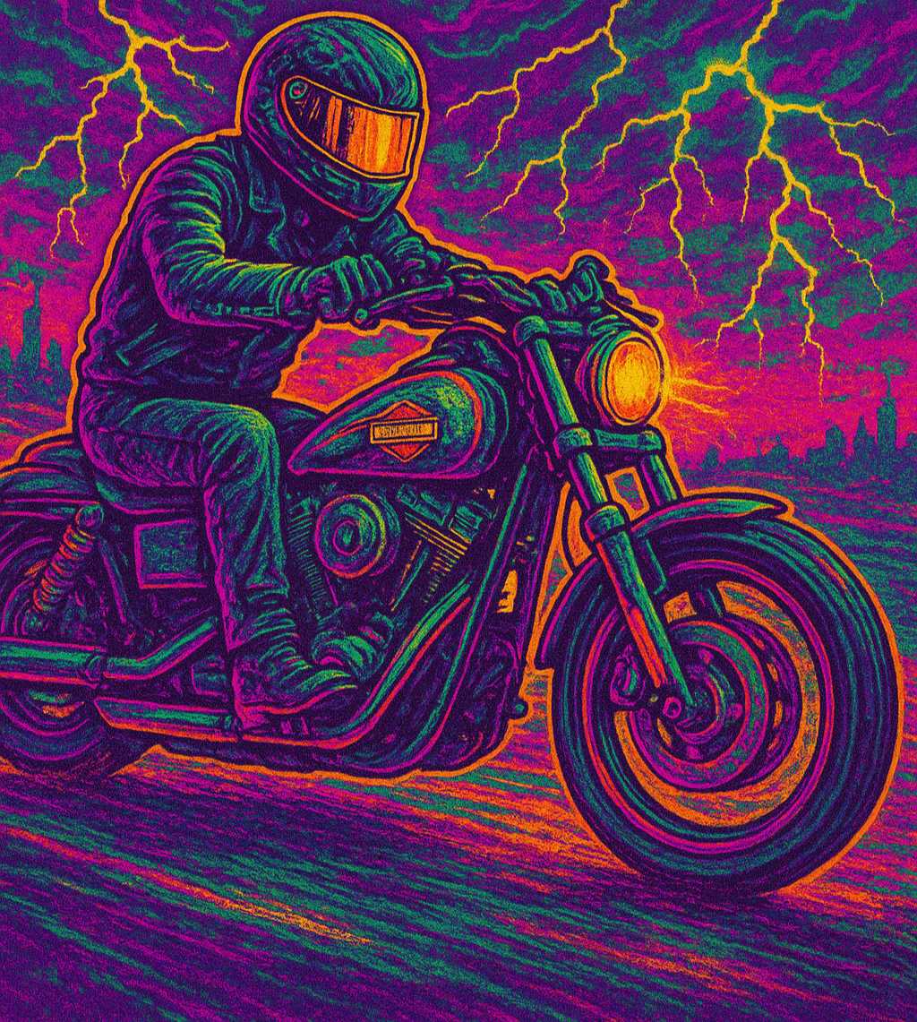 The asphalt is slick from drizzle, every taillight a bleeding pixelation into my visor. The Ghost Bandit cuts through it all clean, stable, surgical. Wind hits and rolls off like static discharge. No wobble, no lift—just the sound of thunder translating through the motor and into the atmosphere.